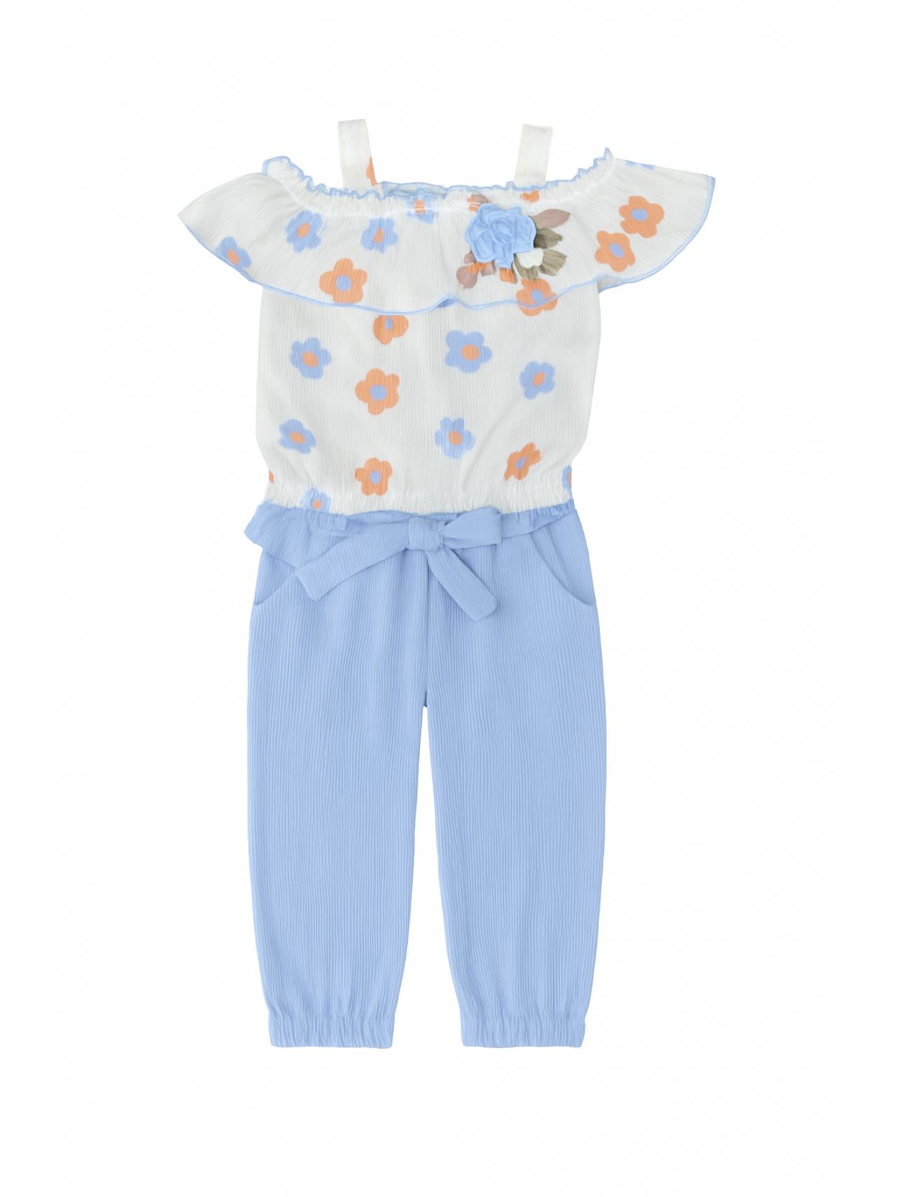 Compleu fetite doua piese alb-albastru 2-5 ani