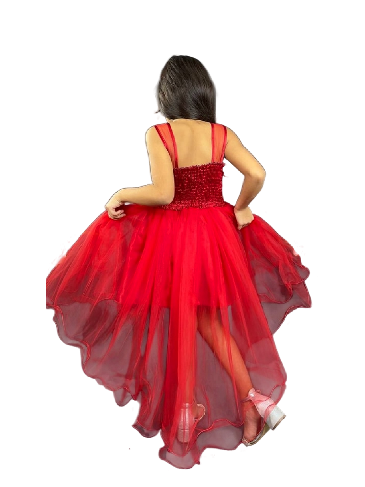 Rochie eleganta cu trena culoarea rosie 6-8 ani