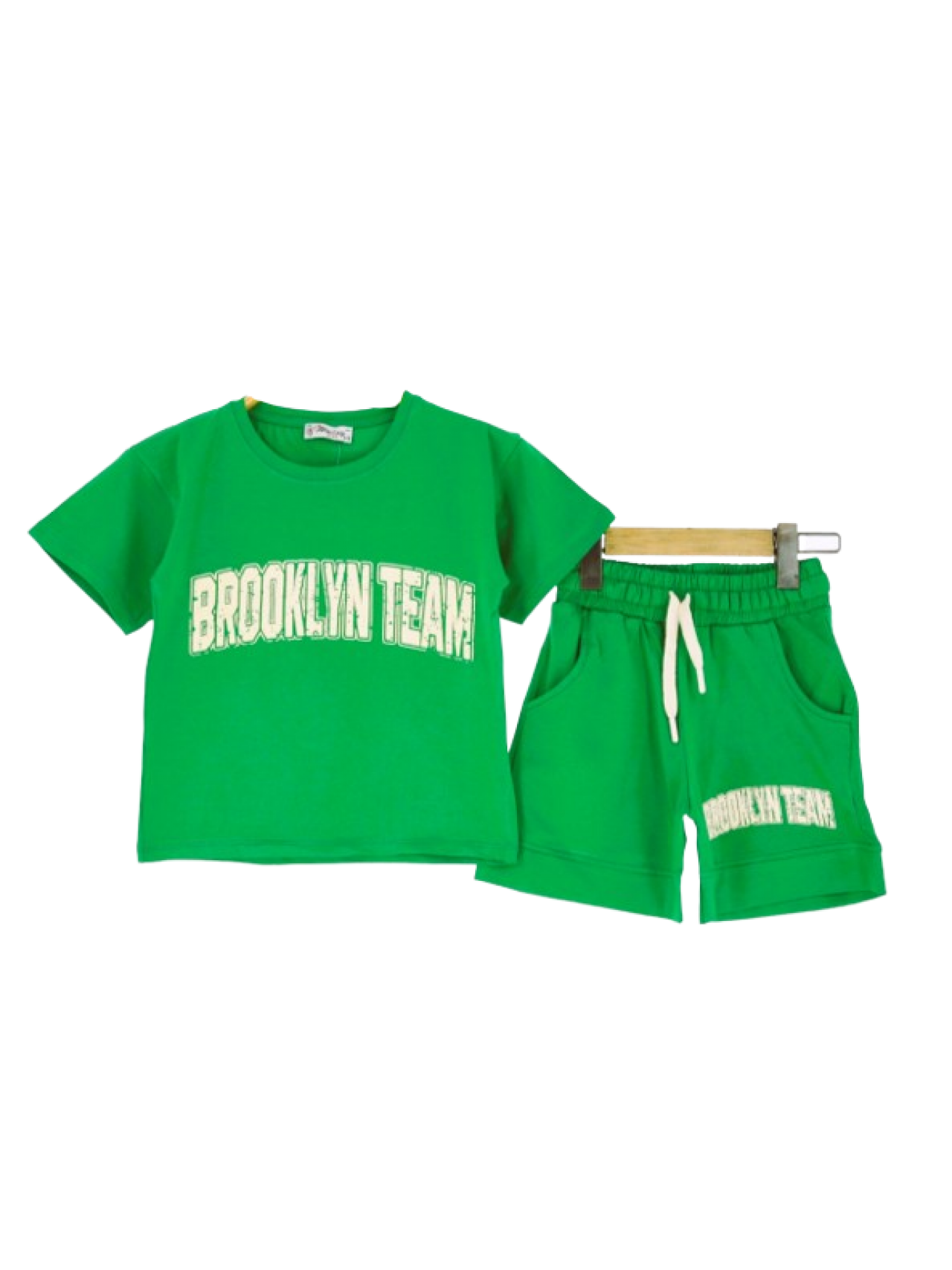 Set de vara tricou si pantaloni scurti verde 4-7 ani