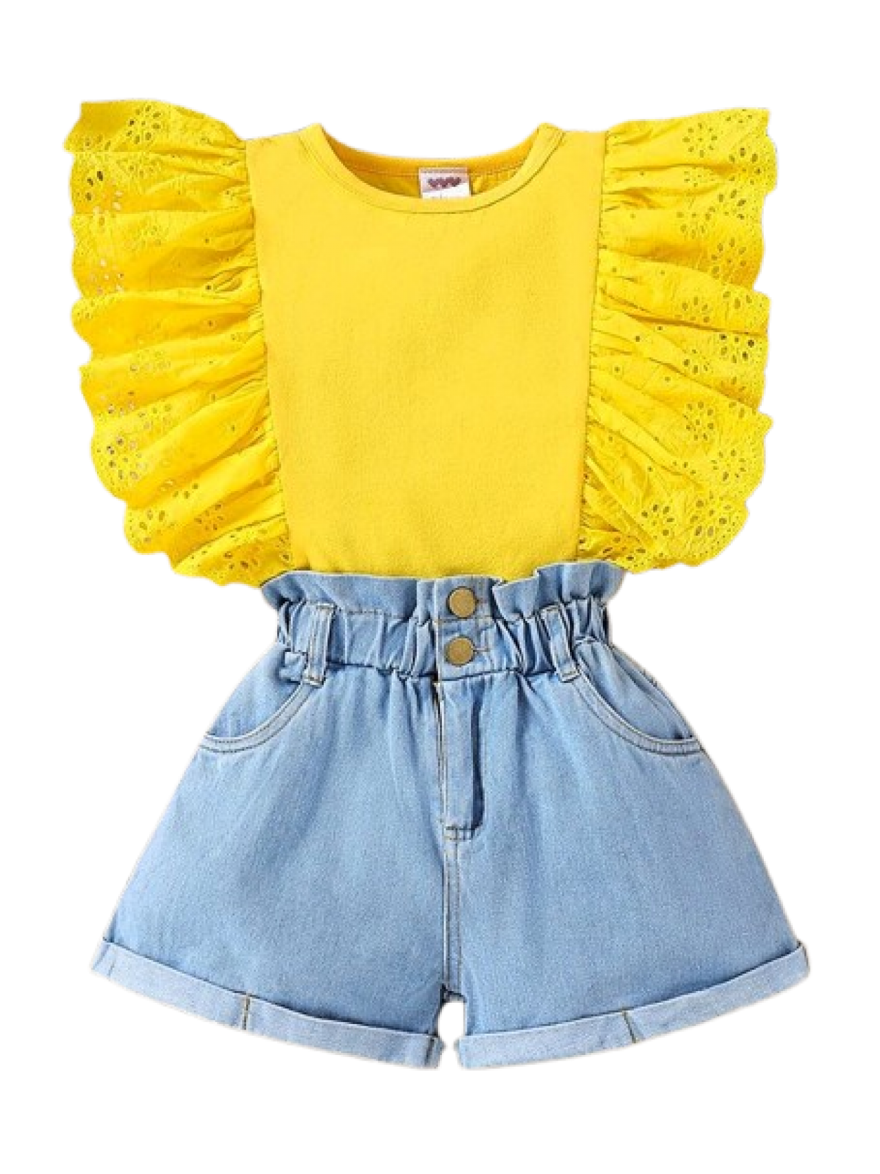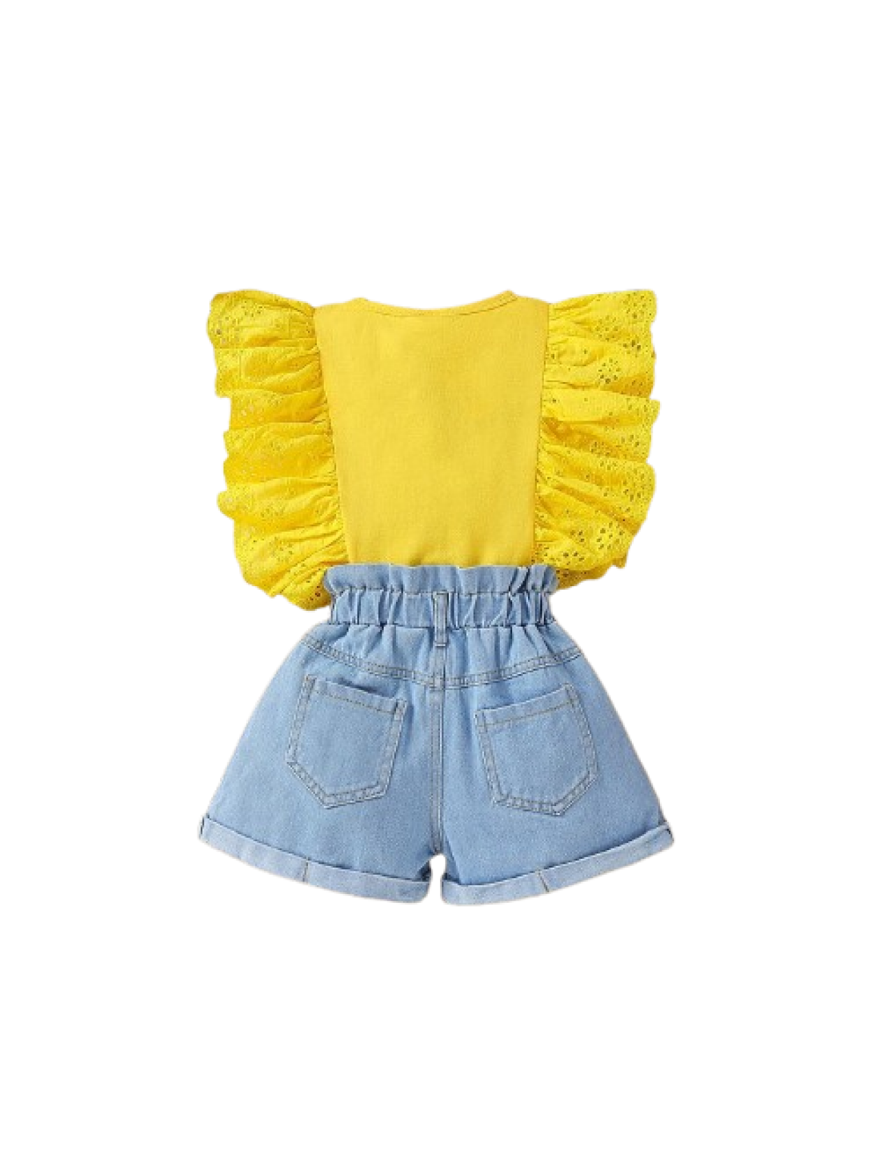 Set fete 2 piese -tricou galben si pantaloni scurti denim (3-7ani)