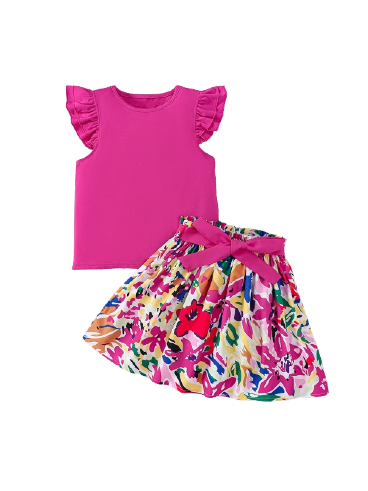 Un set adorabil și confortabil, perfect pentru zilele însorite! Tricoul roz delicat este confecționat din bumbac moale, având un croi lejer și detalii feminine care adaugă un strop de eleganță. Fustița vaporoasă este decorată cu imprimeuri florale vesele, care aduc un plus de culoare și prospețime ținutei. Ideal pentru plimbări, petreceri sau joacă în aer liber, acest set îmbină perfect stilul cu funcționalitatea.
